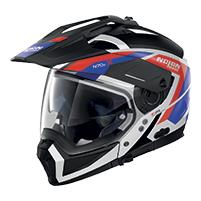 This is Nolan’s top-of-the range road and off road crossover, the first on/off road helmet fitted with a removable protective chin guard on the market. It is characterized by an off road-inspired design, its many technical features and the ample range of colours and graphics available. Its compact size (thanks to the availability of two outer shell sizes), double P/J homologation, ultrawide visor, a particularly wide window compatible with mask use (even with the visor fitted and open), VPS sunscreen (adjustable to various positions and fitted with the automatic repositioning system), AirBooster Technology upper ventilation system, double lever Microlock2 retention system with micrometric regulation, innovative Clima Comfort inner padding (with micro-perforated fabric and adjustable neck-roll) and set up for the N-Com communication system make the N70-2 X the definitive on- off crossover for the most demanding of motorbike tourists.